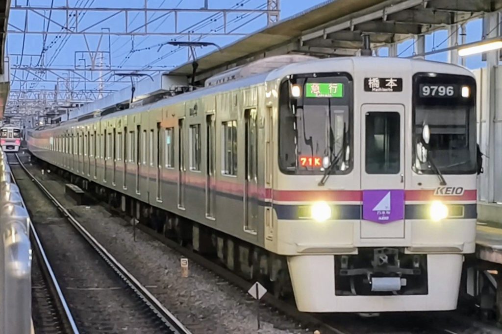 数少ない京王多摩センター行きでやってきました。さっきの急行の時と違って明確にピカピカなのが分かる。